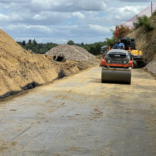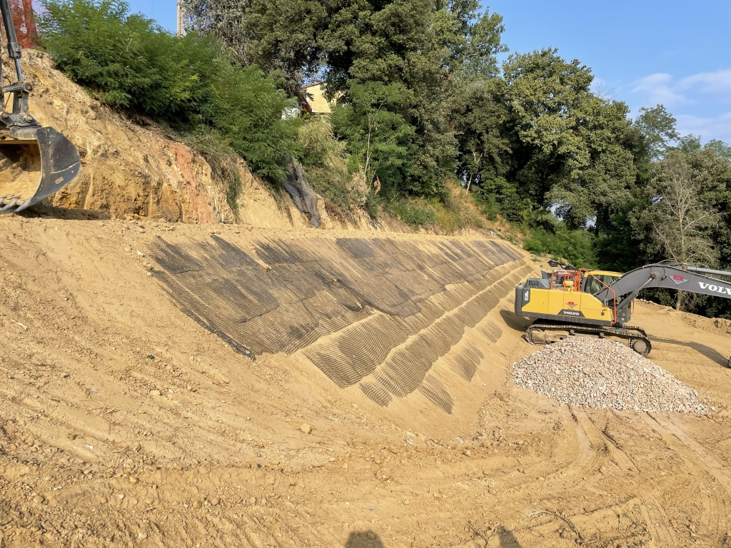 di terre rinforzate con geogriglia, inverdite con idrosemina,