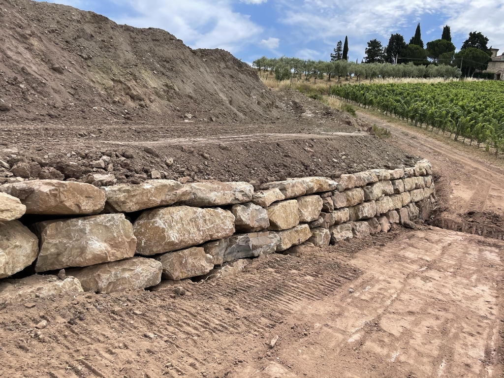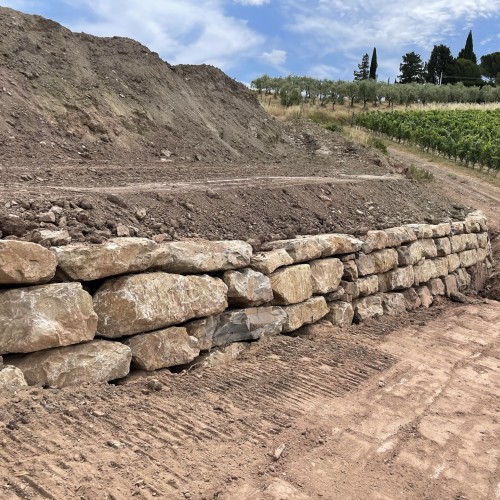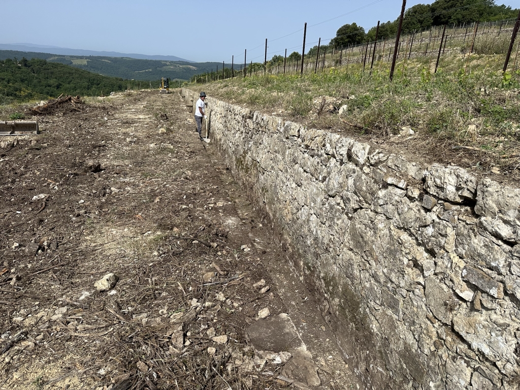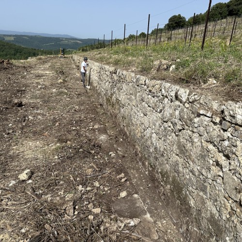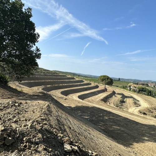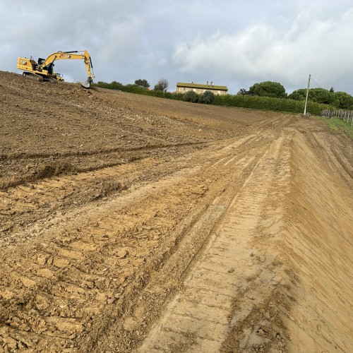 Possiamo occuparci della fase di spietratura e di movimento terra generalizzato, ma anche della messa in sicurezza di una vigna, con la realizzazione di muri a secco, terrazzamenti e sistemazione vie di accesso alla vigna stessa. Infine siamo in grado di curare l'impianto del vigneto, realizzando gli scassi per accogliere le piante e occupandoci anche della fase di piantumazione.